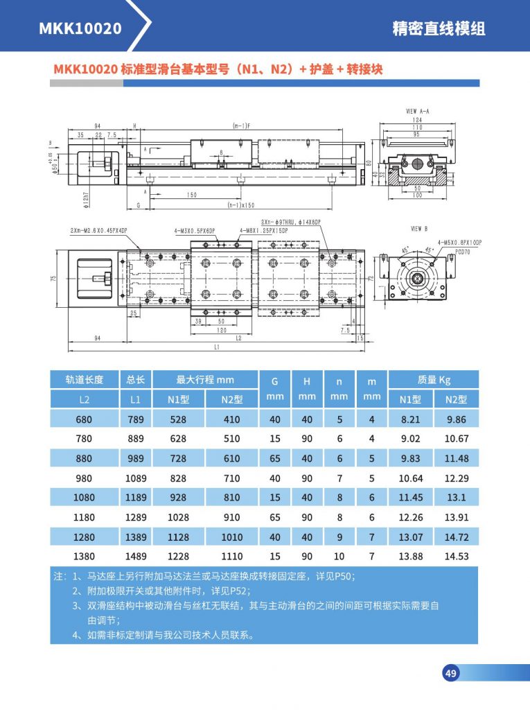 • 高精度设计:传动系统和导向系统均采用国际一流品牌